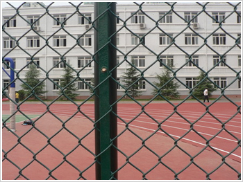 排球场围网生产工艺:编织焊接排球场围网表面处理:围网采用PE/PVC包塑丝,立柱、边框采用喷塑、浸塑处理