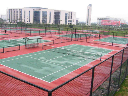 羽毛球场围网优点:具有防腐、防老化、抗晒、耐候、色彩鲜亮、网面平整,强力张紧,不易受外力撞击变形、现场施工安装、灵活性强(可根据现场要求随时调整造型和尺寸)。
