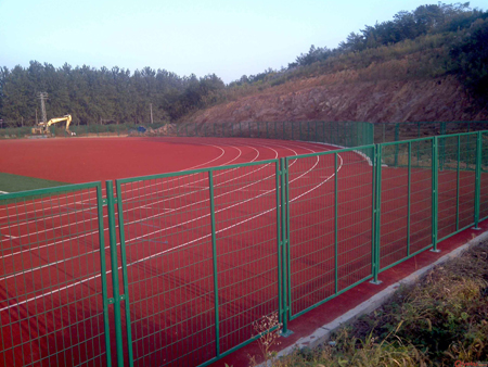 2、焊接网式田径场围网,主要网面材料采用焊接网,焊接网材质为低碳钢丝,网丝硬,防护性强。