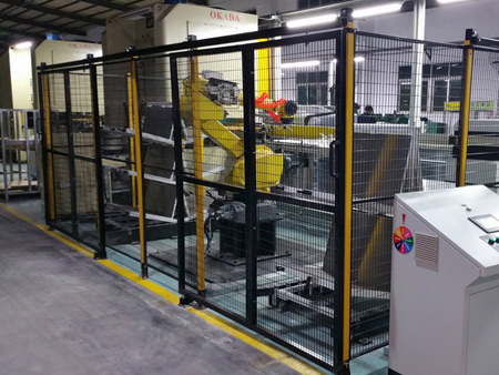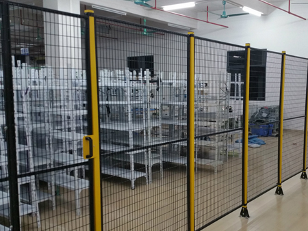车间设备防护网采用斜方网格和编织正方形网格,和方管焊接而成(仿绿篱),是一种新兴的隔离网墙,在保证强度 和防护性能不变的情况下,更接近人们的审美感受,光滑细腻的塑层 亮丽鲜艳的色彩,装饰性好。该产品具有设计新颖、美观、大方、结构紧凑、牢固、组合灵活、安装拆卸方便、易管理等优点。可随意进行组合的活动型金属网墙,